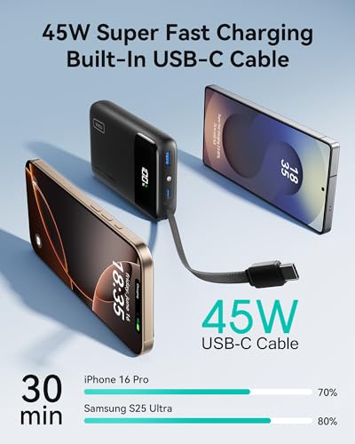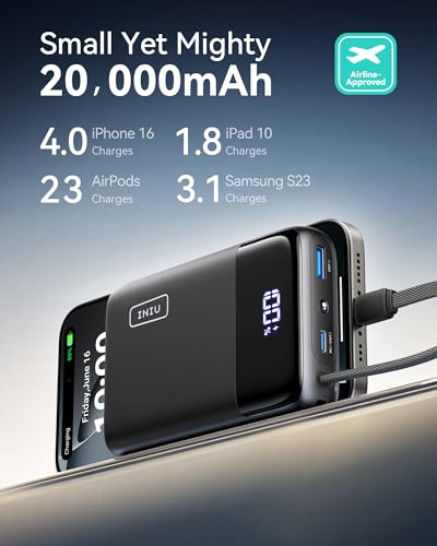 INIU 45W Portable Charger, Fast Charging USB-C for iPhone 16 15 Samsung S25 S24 Google iPad, Travel Phone Charger, Clima