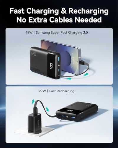 2-Pack 10000mAh Portable Charger USB C in&Out Fast Charging Battery Pack for iPhone 15 Samsung S22 Google Pixel iPad etc